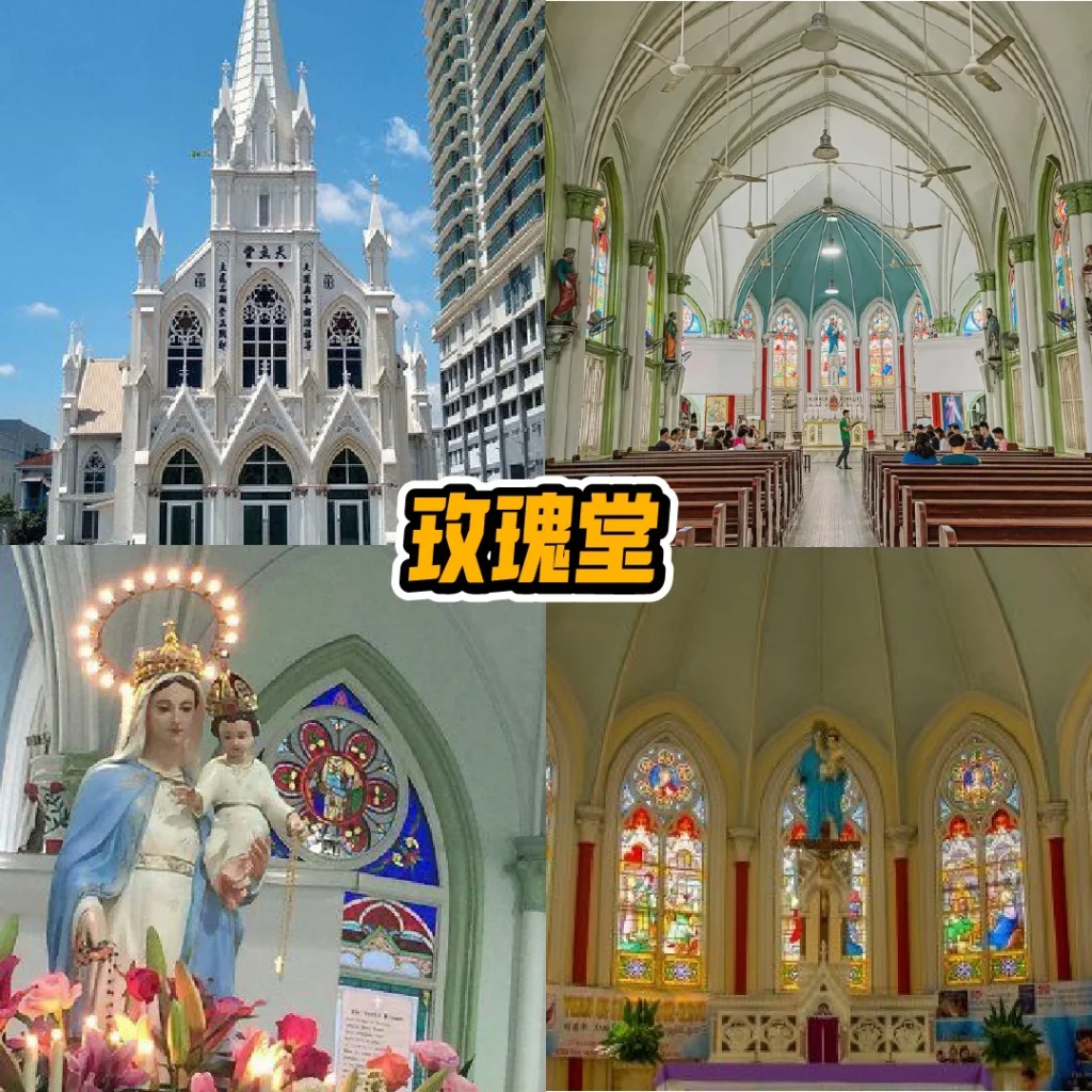 如果说黑风洞是力量与信仰的象征,那么玫瑰堂就是浪漫与宁静的代表。建于 1903 年,这座教堂保留了完整的哥特式建筑风格,洁白的外墙在阳光下格外耀眼,尖顶与弧形拱门让人一秒以为来到了欧洲。