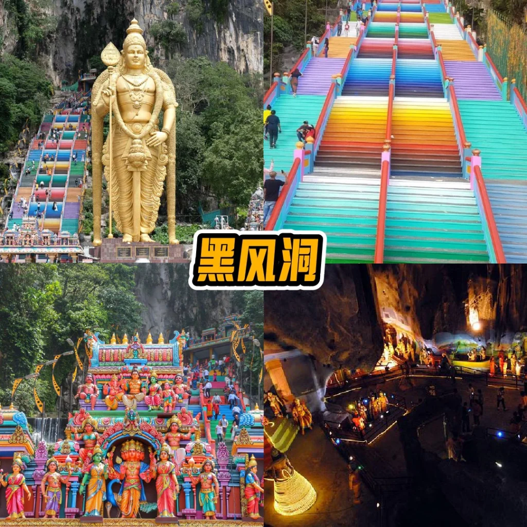 在所有吉隆坡打卡地里,黑风洞绝对是排名第一的存在。它距离市区不远,却能给你一种“瞬间跨国”的感觉。入口处高达 42.7 米的黄金大圣像气势磅礴,几乎是你一眼就会发出“哇塞”的那种震撼。再往上看,那条五颜六色的彩虹阶梯更是让人忍不住想冲上去。