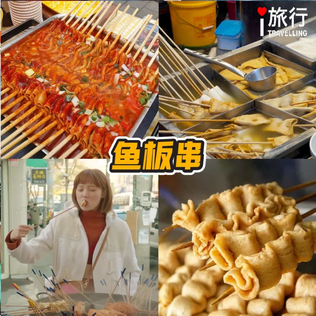 鱼板串可以说是最平易近人的街头小吃了,价格实惠又能填饱肚子。长条形的鱼板被串在竹签上,泡在鲜香的高汤里,不仅口感弹牙,还带着浓郁的汤汁香味。最棒的是,摊主一般都会免费提供鱼板汤,吃鱼板的同时还能一边喝热汤,边走边吃也完全没问题。这种简单却温暖的食物,正是韩国街头魅力的缩影。