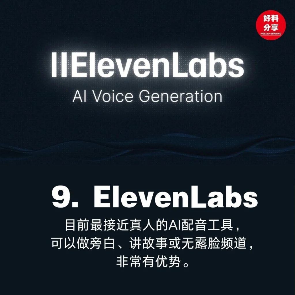 别再用那种死板的机器音了!ElevenLabs 是目前最接近真人的配音工具。无论是讲故事、做旁白还是无露脸频道,它的音质和情感起伏都非常有优势,听起来完全不像AI。