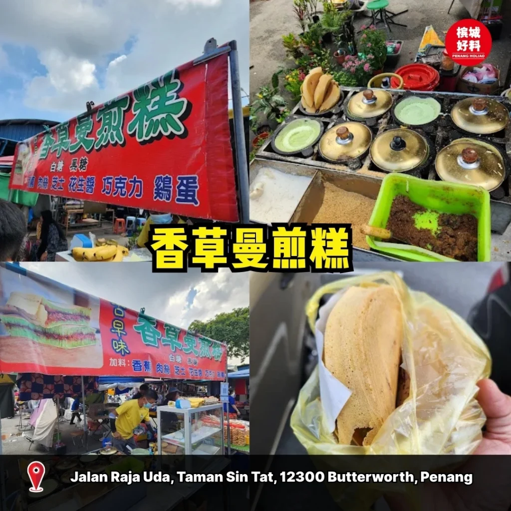 在Raja Uda Sin Tat一带,这个曼煎糕档口绝对是很多人童年最美好的回忆。看着老板熟练地现倒面糊、现煎、现折,那种淡淡的香草清香伴随着花生粉和砂糖的焦香味,真的太治愈了。小时候最期待的就是放学后阿爸阿妈带我去买一份热乎乎的曼煎糕,口感Q弹扎实,吃的是一份简单的快乐。