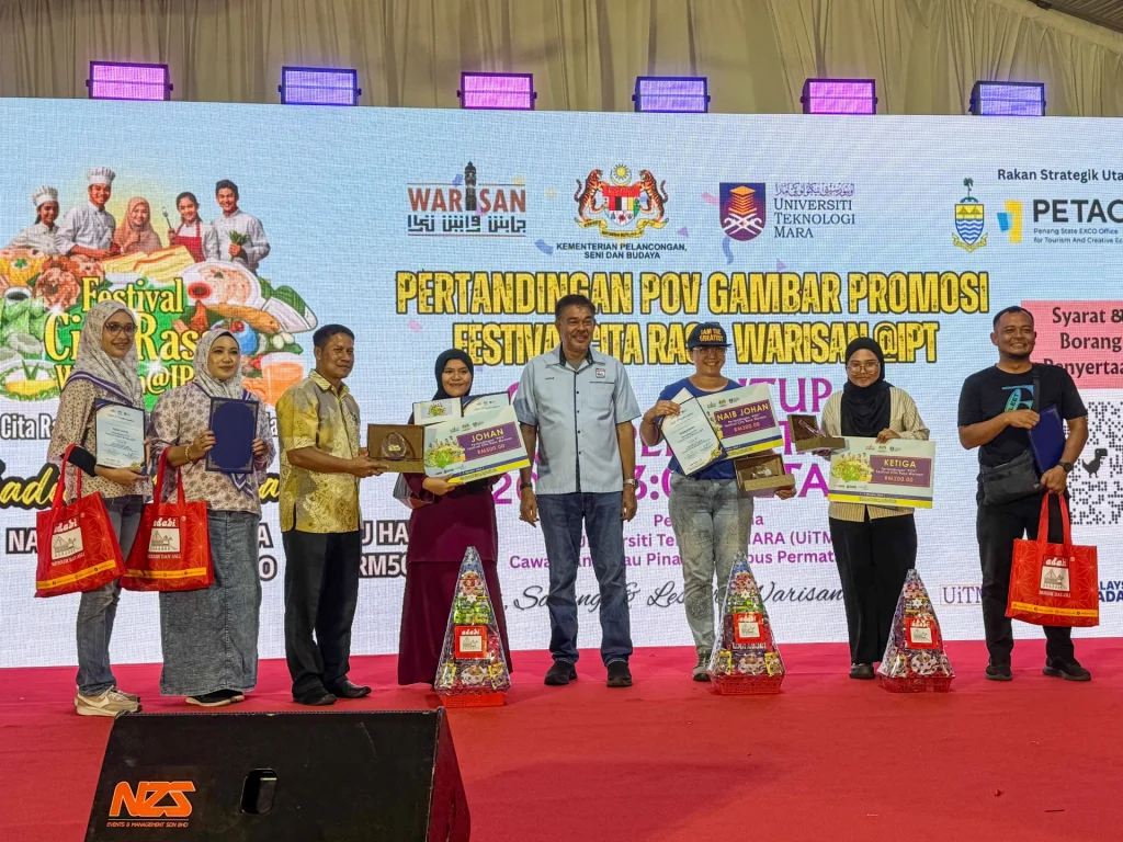 【槟城讯】由旅游、艺术及文化部(MOTAC)、国家文化遗产局(JWN)及玛拉工艺大学槟城分校(UiTM Cawangan Pulau Pinang)联合主办的 Festival Cita Rasa Warisan @ IPT 2025 于10月9日在Permatang Pauh校区圆满落幕。活动也获得主要策略伙伴——槟城州政府、槟州旅游及创意经济事务行政议员YB黄汉伟办事处及威省市政厅(MBSP)的大力支持。
